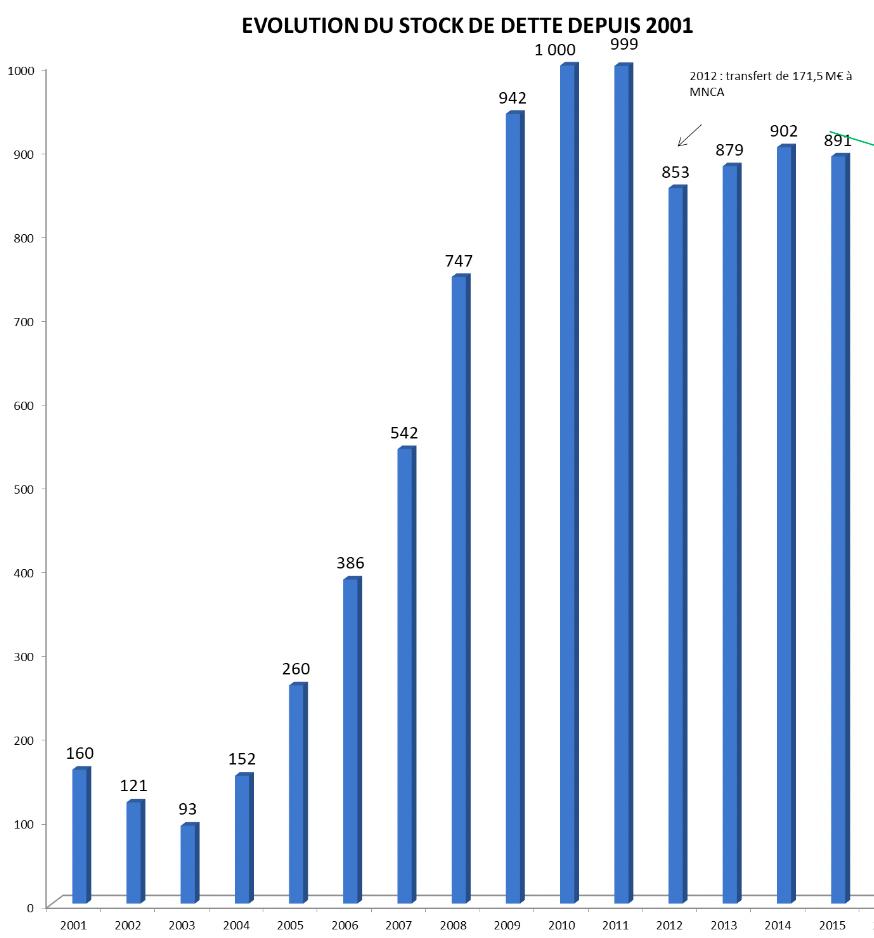 Alors 2012 est présentée comme celle d’un tournant vertueux, il s'agit en réalité d'une illusion. La baisse affichée du stock de dette ne résulte pas d’un redressement financier, mais d’un simple tour de passe-passe comptable : le transfert de 171 M€ de dette vers la Métropole.